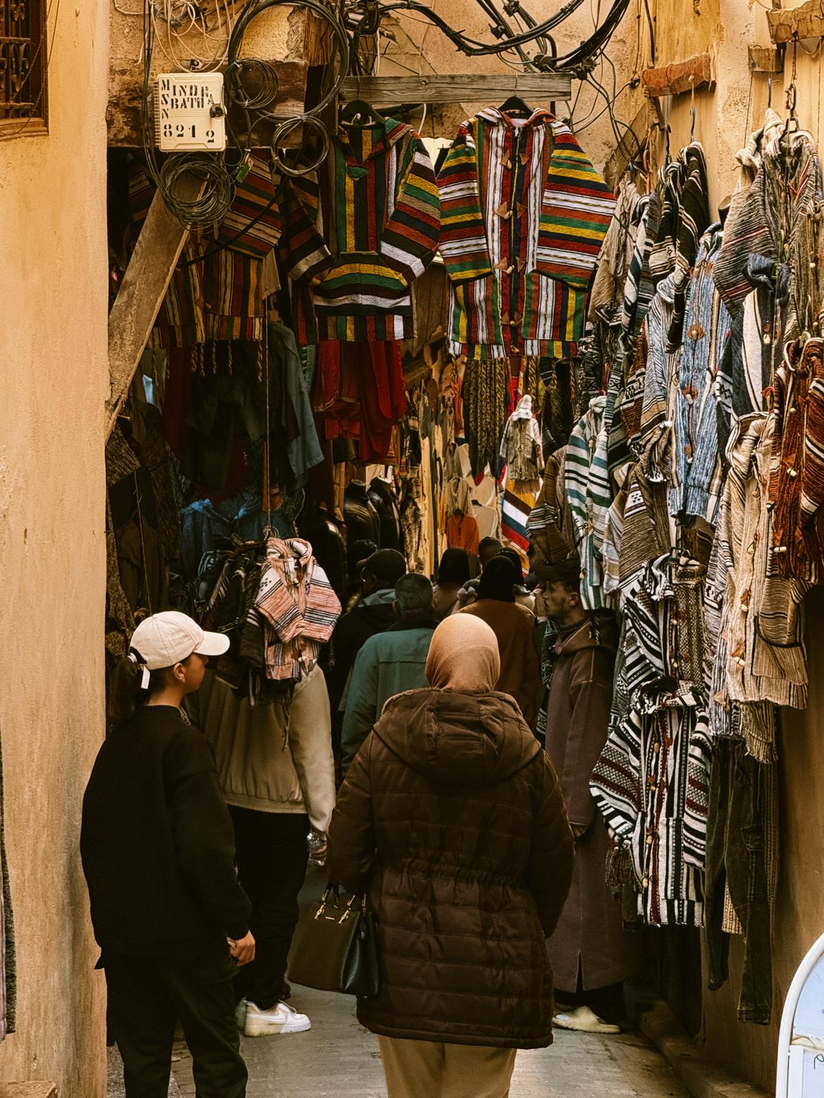 Die Medina selbst ist ein Fest für die Sinne: unzählige Souks, überall Gerüche von Leder, frischem Brot, Oliven und Fleisch. Dazwischen Teppiche, Gewürze, Kleidung und Souvenirs. Es ist laut, eng, chaotisch –also genau das, was ich von einer marokkanischen Stadt erwarte.