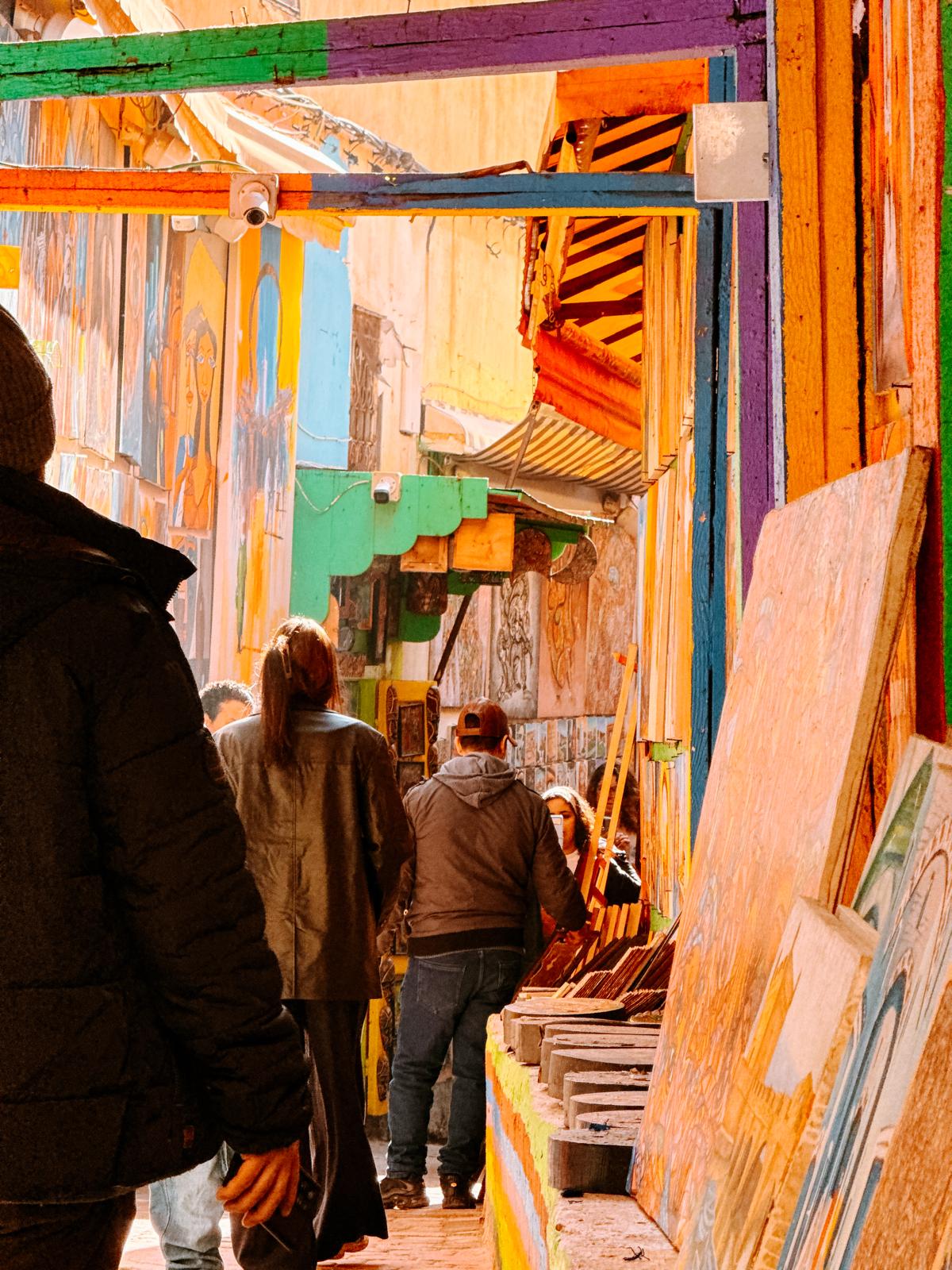 Mitten in der Medina läufst du früher oder später durch diese bunte Gassen, die viele als „Rainbow Street“ bezeichnen. Einen offiziellen Namen gibt es hier eigentlich nicht, aber du erkennst die Stelle sofort an den farbig gestrichenen Wänden und bunten Gemälden.
